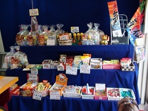 お話をしていく中で、利用者や地域の方々のニーズを敏感に感じ取り、そのニーズを満たすべく積極的に活動していることが強く伝わってきました。また、事業を運営するにあたり様々な工夫が施され、利用者の方々にも地域の方々にも必要とされている福祉施設であると感じました。上2枚の写真は、利用者の方の絵を活用したレターセットや一筆箋です。施設の一角(施設入口付近)を使用して販売されていました。この他に、”駄菓子”が販売されていました(写真 下・一番右)。利用者の方が作った手芸品やお花等を販売しているという施設へ視察をしたことはありますが、そういった商品ではなく、駄菓子を販売しているという施設は初めてでした。なぜ福祉施設で駄菓子を販売するか、その答えは、「利用者の方々が売ることを通して”地域とのつながり”を見出すことを目的として行っている」ということでした。